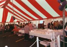 Inside at the refreshment tables